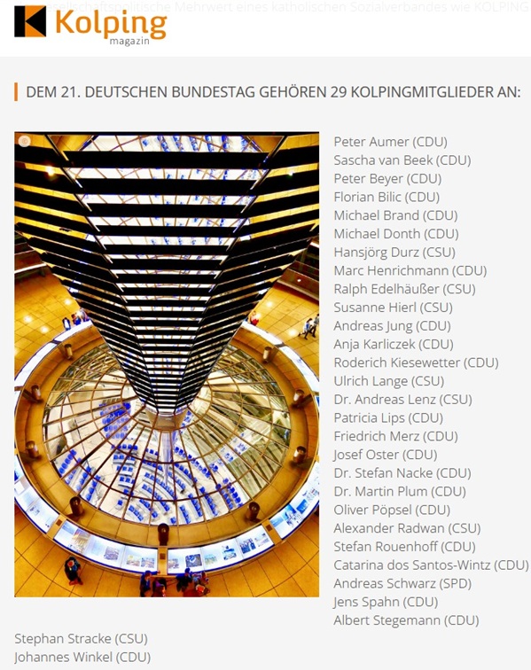 Als sich jetzt die gerade von der CDU/CSU geforderte und so heftig diskutierte Reform des Bürgergeldes als Flopp entpuppte, habe ich noch einmal recherchiert, welche MdB's Mitglieder im Kolpingwerk sind:
