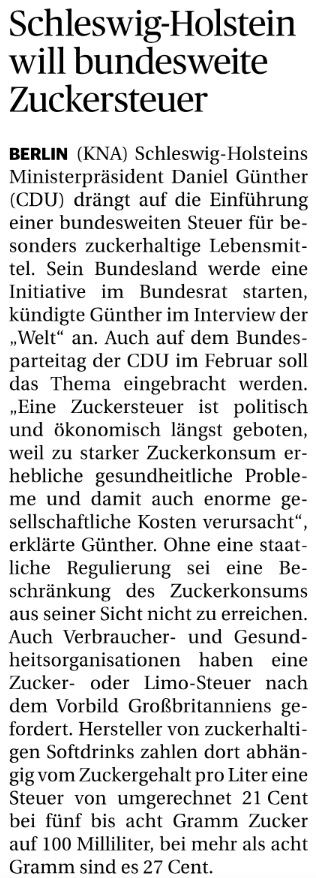 23.12.2025 - Rheinische Post: "Es ist Zeit für die Zuckersteuer"